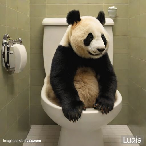 Imagina un oso panda sentado en un wc