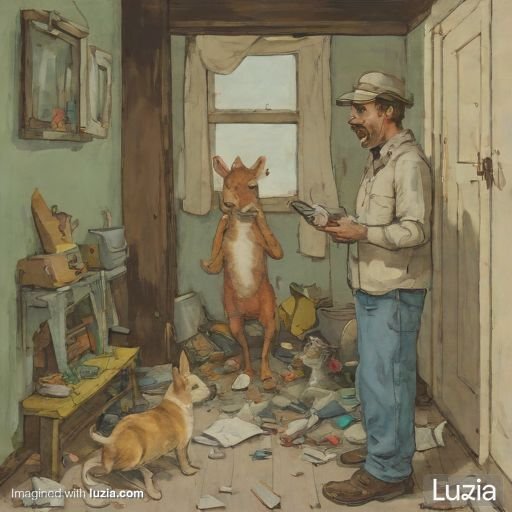 La verdad que no sabemos exactamente que es, aunque en el dibujo podemos apreciar un tipo feo, todo desordenado y lo que parece un perro-conejo y un canguro con doble cabeza. Cosas de la IA.