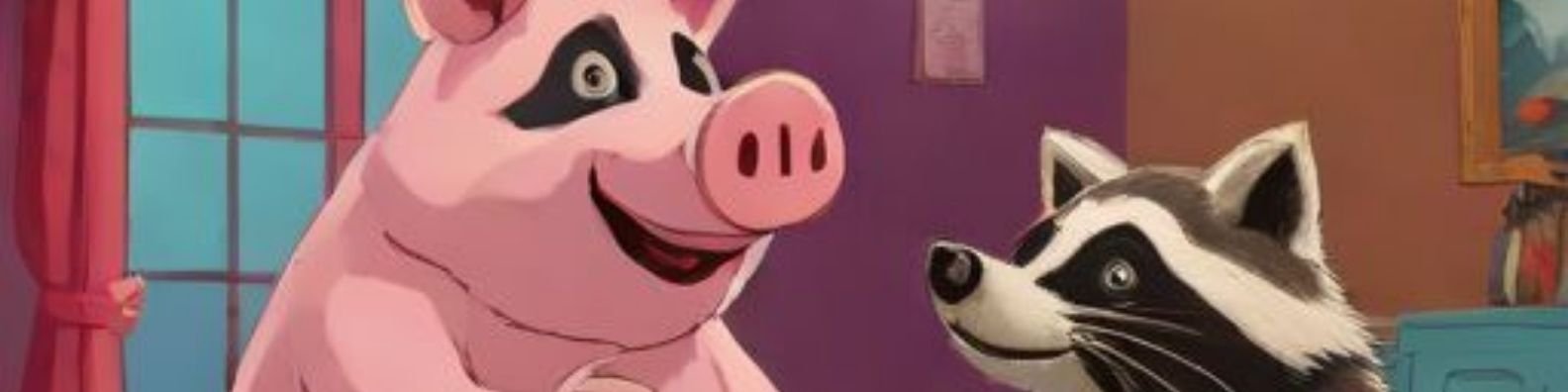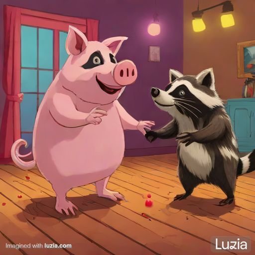 Imagina un cerdo y un mapache en una pista de baile