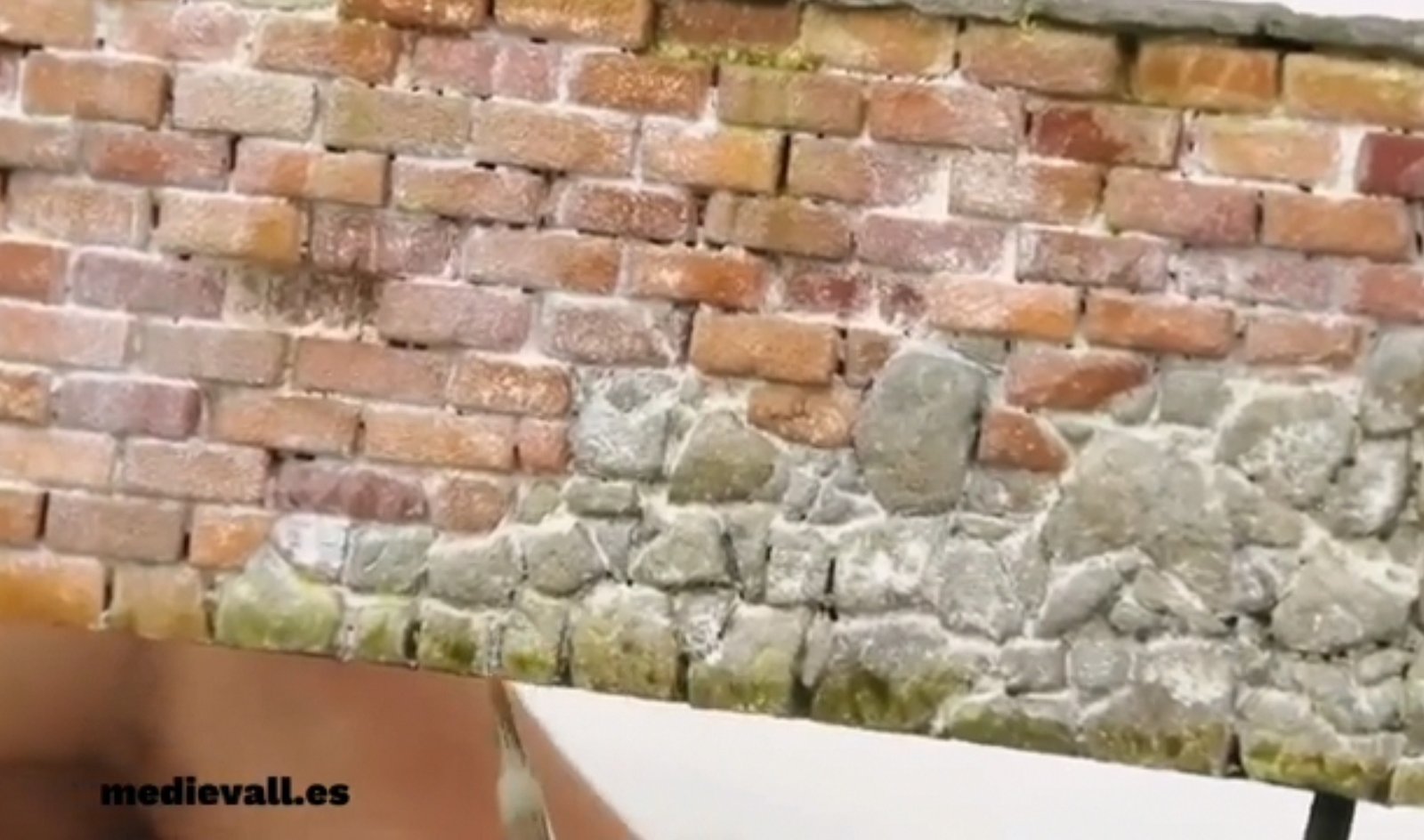 Cómo veis en la foto de portada el muro es muy realista, pero muy sencillo de hacer. Además, vamos a mezclar dos técnicas para realizar la tapia, una para imitar los ladrillos y otra para piedra vieja.
